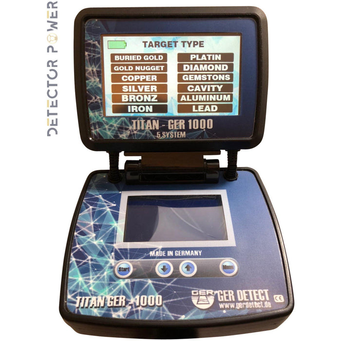 Finally, the hard work and the random search end and we are putting in the hands of professional and amateur explorers the latest detection technology. The TITAN GER Detect 1000 metal detector is a device that contains a complete search box control. 5 systems in a single device.